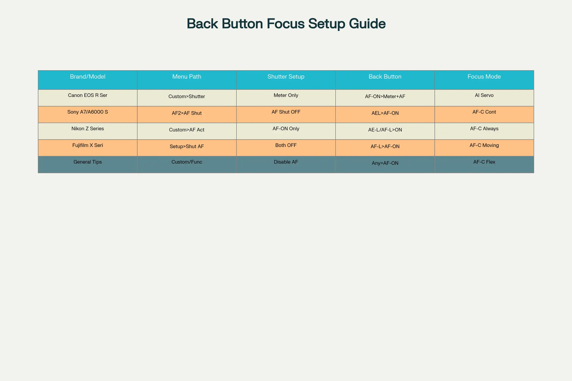 Back Button Focus Setup Guide for Popular Mirrorless Camera Brands