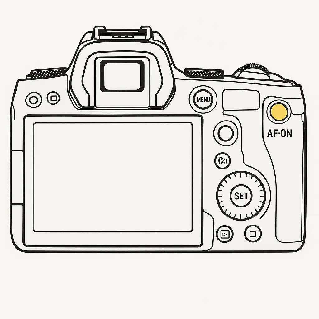Camera back panel showing AF-ON button location for back button focusing