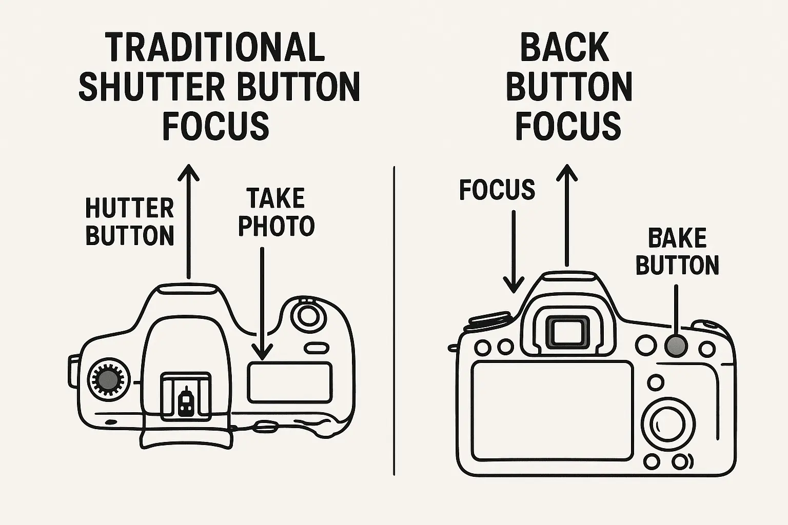 Visual comparison of traditional vs back button focusing techniques